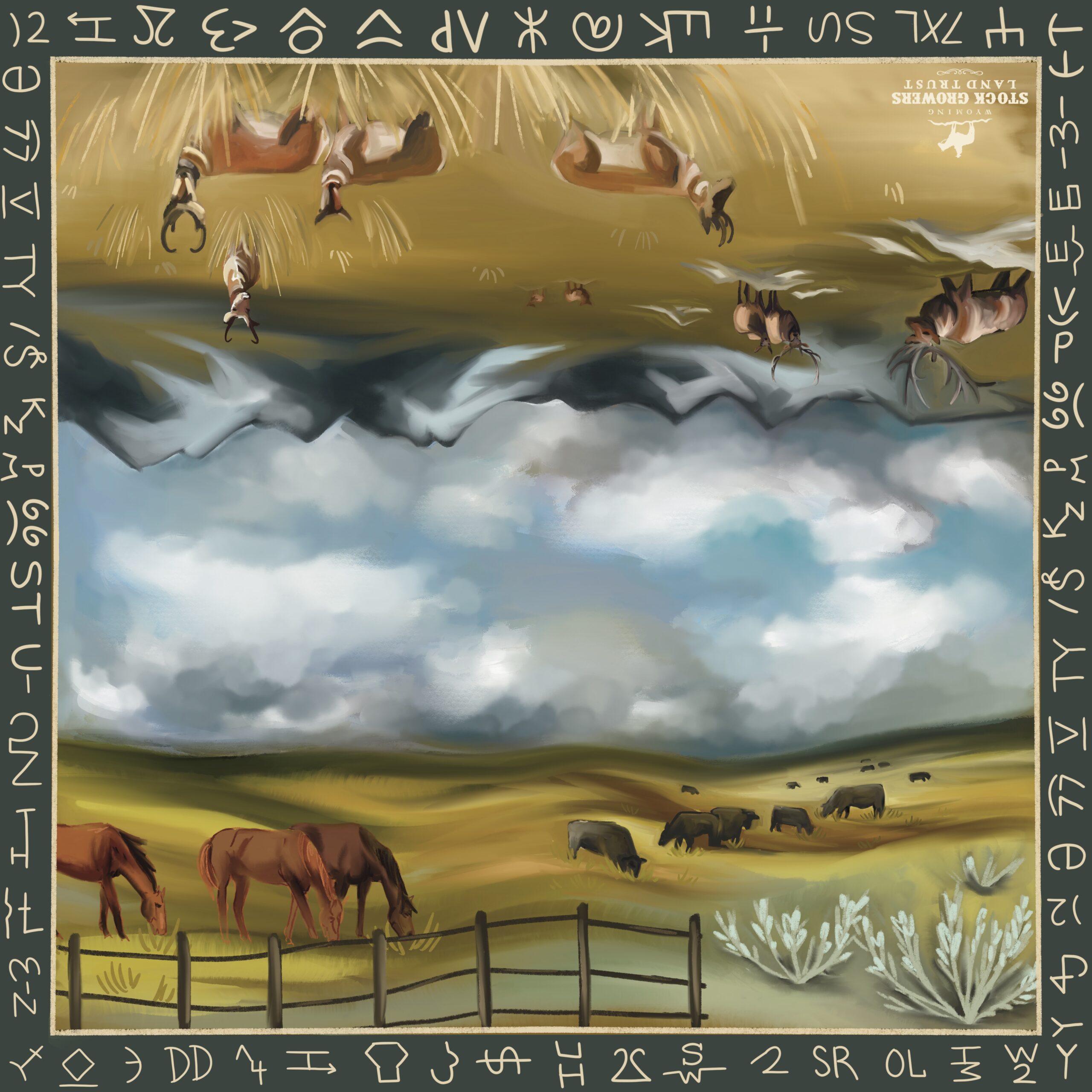 Created exclusively for the Wyoming Stock Growers Land Trust, each scarf tells a story of the land, wildlife, and heritage we work to protect. From snow-covered mountains and open fields, to grazing livestock and wildlife, every detail was thoughtfully illustrated to reflect the values at the heart of our mission.